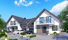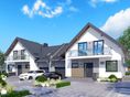 Graficzne opracowanie rzutów poglądowych widocznych na karcie projektu zostało wykonane przez Extradom.pl. Prezentowane przez Extradom.pl wizualizacje wykonane zostały przez autora projektu i należy poczytywać je jedynie za przykład i propozycję wykończenia, wizję architektoniczną autora projektu. Ostateczne wykończenie budynku może nastąpić na wiele sposobów. Szczegółowe rozwiązania zastosowane w oferowanej dokumentacji - w tym również ilość, lokalizacje i wygląd okien, drzwi, kominów - mogą w niewielkim stopniu różnić się od prezentowanej wizualizacji budynku.