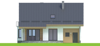 Graficzne opracowanie rzutów poglądowych widocznych na karcie projektu zostało wykonane przez Extradom.pl. Prezentowane przez Extradom.pl wizualizacje wykonane zostały przez autora projektu i należy poczytywać je jedynie za przykład i propozycję wykończenia, wizję architektoniczną autora projektu. Ostateczne wykończenie budynku może nastąpić na wiele sposobów. Szczegółowe rozwiązania zastosowane w oferowanej dokumentacji - w tym również ilość, lokalizacje i wygląd okien, drzwi, kominów - mogą w niewielkim stopniu różnić się od prezentowanej wizualizacji budynku.
