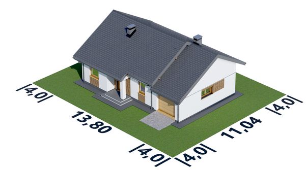 Graficzne opracowanie rzutów poglądowych widocznych na karcie projektu zostało wykonane przez Extradom.pl. Prezentowane przez Extradom.pl wizualizacje wykonane zostały przez autora projektu i należy poczytywać je jedynie za przykład i propozycję wykończenia, wizję architektoniczną autora projektu. Ostateczne wykończenie budynku może nastąpić na wiele sposobów. Szczegółowe rozwiązania zastosowane w oferowanej dokumentacji - w tym również ilość, lokalizacje i wygląd okien, drzwi, kominów - mogą w niewielkim stopniu różnić się od prezentowanej wizualizacji budynku.