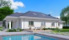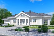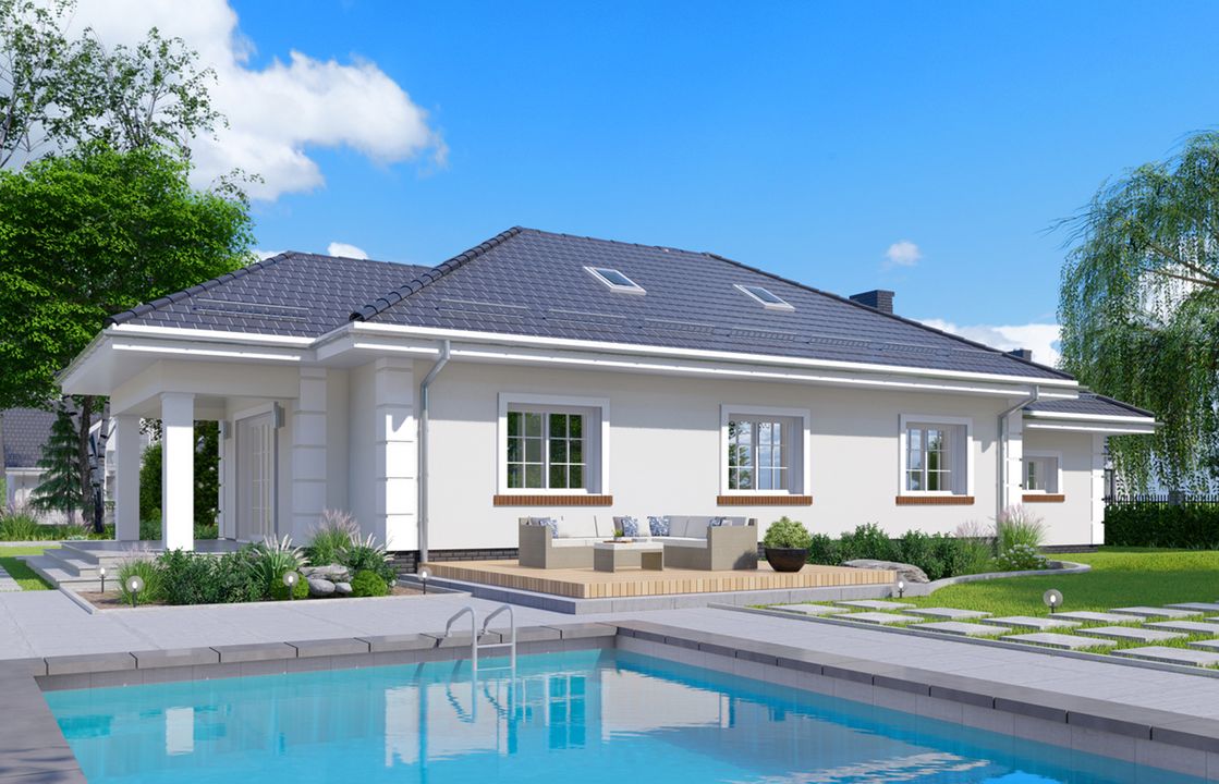 Graficzne opracowanie rzutów poglądowych widocznych na karcie projektu zostało wykonane przez Extradom.pl. Prezentowane przez Extradom.pl wizualizacje wykonane zostały przez autora projektu i należy poczytywać je jedynie za przykład i propozycję wykończenia, wizję architektoniczną autora projektu. Ostateczne wykończenie budynku może nastąpić na wiele sposobów. Szczegółowe rozwiązania zastosowane w oferowanej dokumentacji - w tym również ilość, lokalizacje i wygląd okien, drzwi, kominów - mogą w niewielkim stopniu różnić się od prezentowanej wizualizacji budynku.