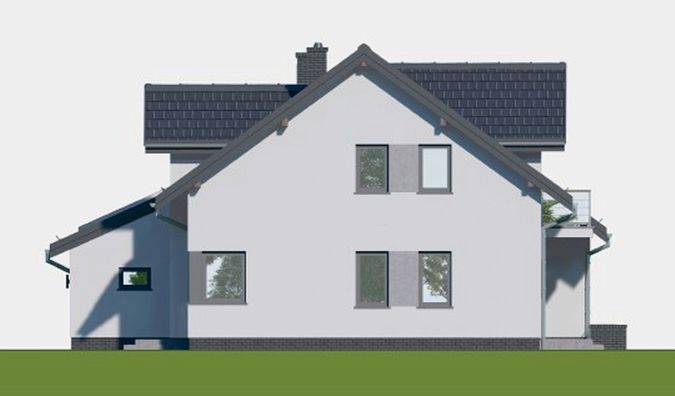 Graficzne opracowanie rzutów poglądowych widocznych na karcie projektu zostało wykonane przez Extradom.pl. Prezentowane przez Extradom.pl wizualizacje wykonane zostały przez autora projektu i należy poczytywać je jedynie za przykład i propozycję wykończenia, wizję architektoniczną autora projektu. Ostateczne wykończenie budynku może nastąpić na wiele sposobów. Szczegółowe rozwiązania zastosowane w oferowanej dokumentacji - w tym również ilość, lokalizacje i wygląd okien, drzwi, kominów - mogą w niewielkim stopniu różnić się od prezentowanej wizualizacji budynku.