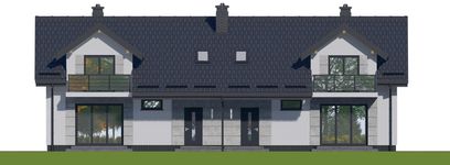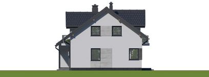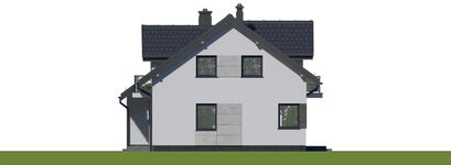 Graficzne opracowanie rzutów poglądowych widocznych na karcie projektu zostało wykonane przez Extradom.pl. Prezentowane przez Extradom.pl wizualizacje wykonane zostały przez autora projektu i należy poczytywać je jedynie za przykład i propozycję wykończenia, wizję architektoniczną autora projektu. Ostateczne wykończenie budynku może nastąpić na wiele sposobów. Szczegółowe rozwiązania zastosowane w oferowanej dokumentacji - w tym również ilość, lokalizacje i wygląd okien, drzwi, kominów - mogą w niewielkim stopniu różnić się od prezentowanej wizualizacji budynku.