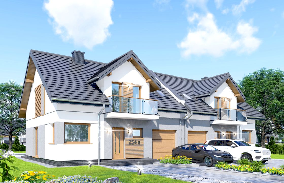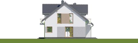 Graficzne opracowanie rzutów poglądowych widocznych na karcie projektu zostało wykonane przez Extradom.pl. Prezentowane przez Extradom.pl wizualizacje wykonane zostały przez autora projektu i należy poczytywać je jedynie za przykład i propozycję wykończenia, wizję architektoniczną autora projektu. Ostateczne wykończenie budynku może nastąpić na wiele sposobów. Szczegółowe rozwiązania zastosowane w oferowanej dokumentacji - w tym również ilość, lokalizacje i wygląd okien, drzwi, kominów - mogą w niewielkim stopniu różnić się od prezentowanej wizualizacji budynku.
