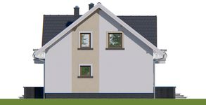 Graficzne opracowanie rzutów poglądowych widocznych na karcie projektu zostało wykonane przez Extradom.pl. Prezentowane przez Extradom.pl wizualizacje wykonane zostały przez autora projektu i należy poczytywać je jedynie za przykład i propozycję wykończenia, wizję architektoniczną autora projektu. Ostateczne wykończenie budynku może nastąpić na wiele sposobów. Szczegółowe rozwiązania zastosowane w oferowanej dokumentacji - w tym również ilość, lokalizacje i wygląd okien, drzwi, kominów - mogą w niewielkim stopniu różnić się od prezentowanej wizualizacji budynku.