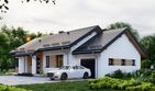 Graficzne opracowanie rzutów poglądowych widocznych na karcie projektu zostało wykonane przez Extradom.pl. Prezentowane przez Extradom.pl wizualizacje wykonane zostały przez autora projektu i należy poczytywać je jedynie za przykład i propozycję wykończenia, wizję architektoniczną autora projektu. Ostateczne wykończenie budynku może nastąpić na wiele sposobów. Szczegółowe rozwiązania zastosowane w oferowanej dokumentacji - w tym również ilość, lokalizacje i wygląd okien, drzwi, kominów - mogą w niewielkim stopniu różnić się od prezentowanej wizualizacji budynku.