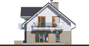 Graficzne opracowanie rzutów poglądowych widocznych na karcie projektu zostało wykonane przez Extradom.pl. Prezentowane przez Extradom.pl wizualizacje wykonane zostały przez autora projektu i należy poczytywać je jedynie za przykład i propozycję wykończenia, wizję architektoniczną autora projektu. Ostateczne wykończenie budynku może nastąpić na wiele sposobów. Szczegółowe rozwiązania zastosowane w oferowanej dokumentacji - w tym również ilość, lokalizacje i wygląd okien, drzwi, kominów - mogą w niewielkim stopniu różnić się od prezentowanej wizualizacji budynku.