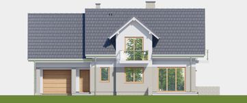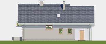 Graficzne opracowanie rzutów poglądowych widocznych na karcie projektu zostało wykonane przez Extradom.pl. Prezentowane przez Extradom.pl wizualizacje wykonane zostały przez autora projektu i należy poczytywać je jedynie za przykład i propozycję wykończenia, wizję architektoniczną autora projektu. Ostateczne wykończenie budynku może nastąpić na wiele sposobów. Szczegółowe rozwiązania zastosowane w oferowanej dokumentacji - w tym również ilość, lokalizacje i wygląd okien, drzwi, kominów - mogą w niewielkim stopniu różnić się od prezentowanej wizualizacji budynku.