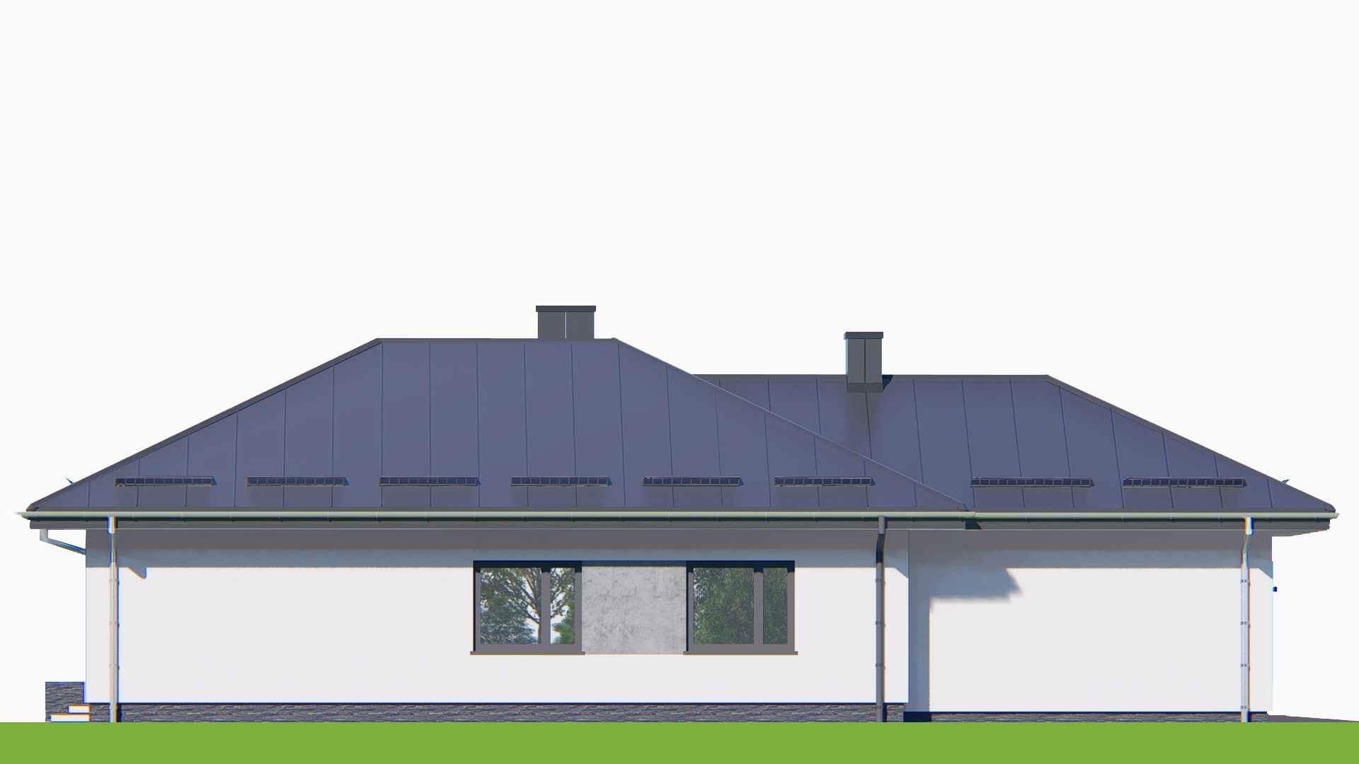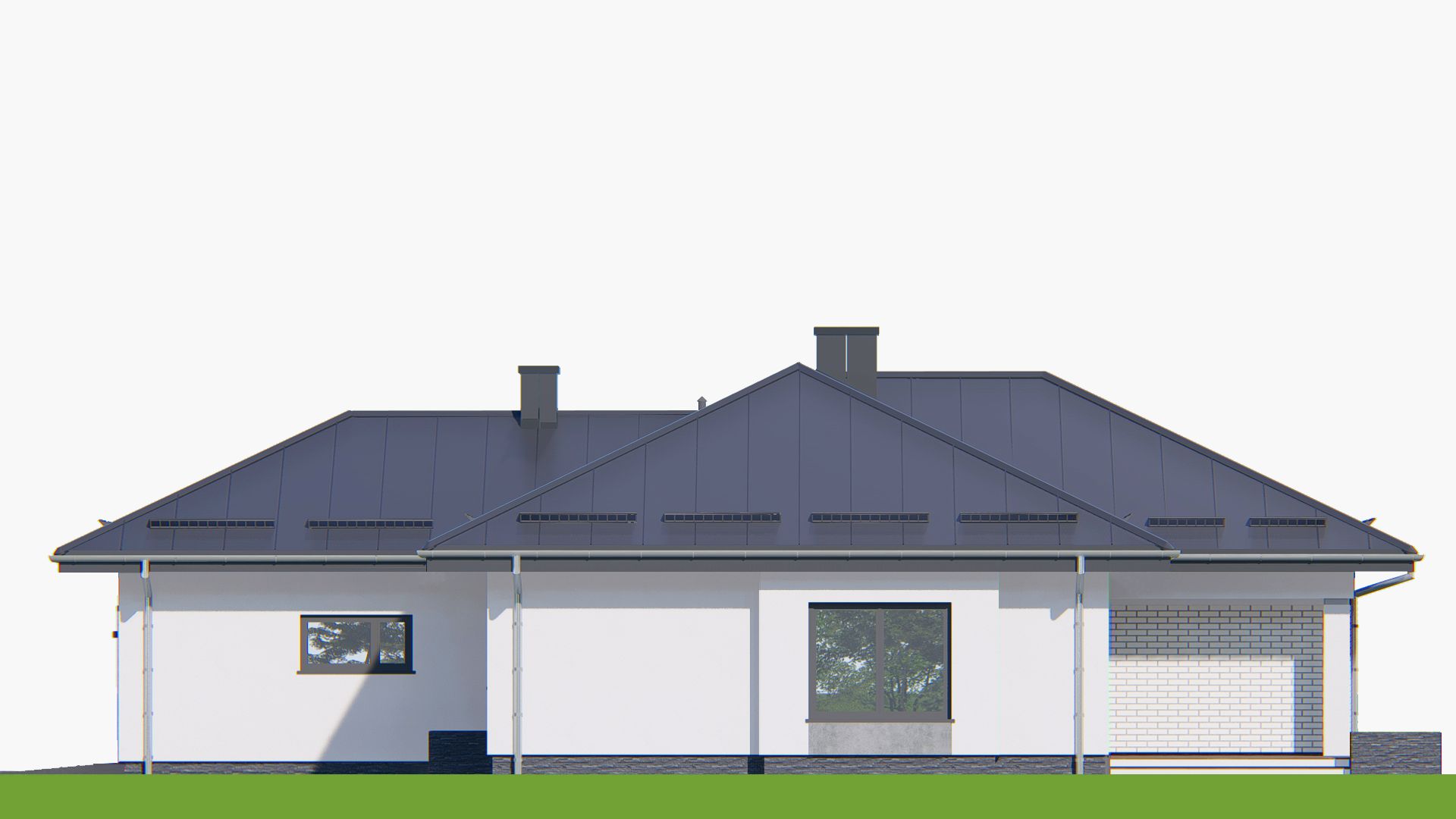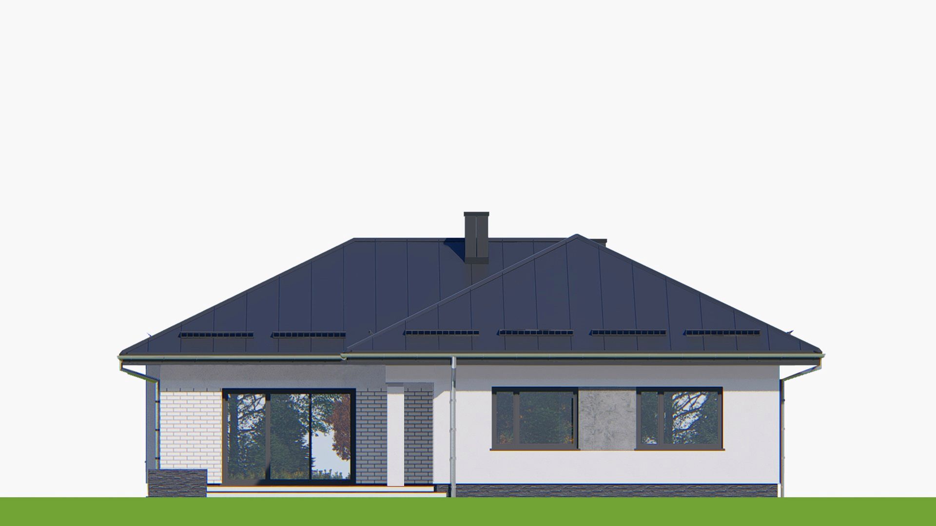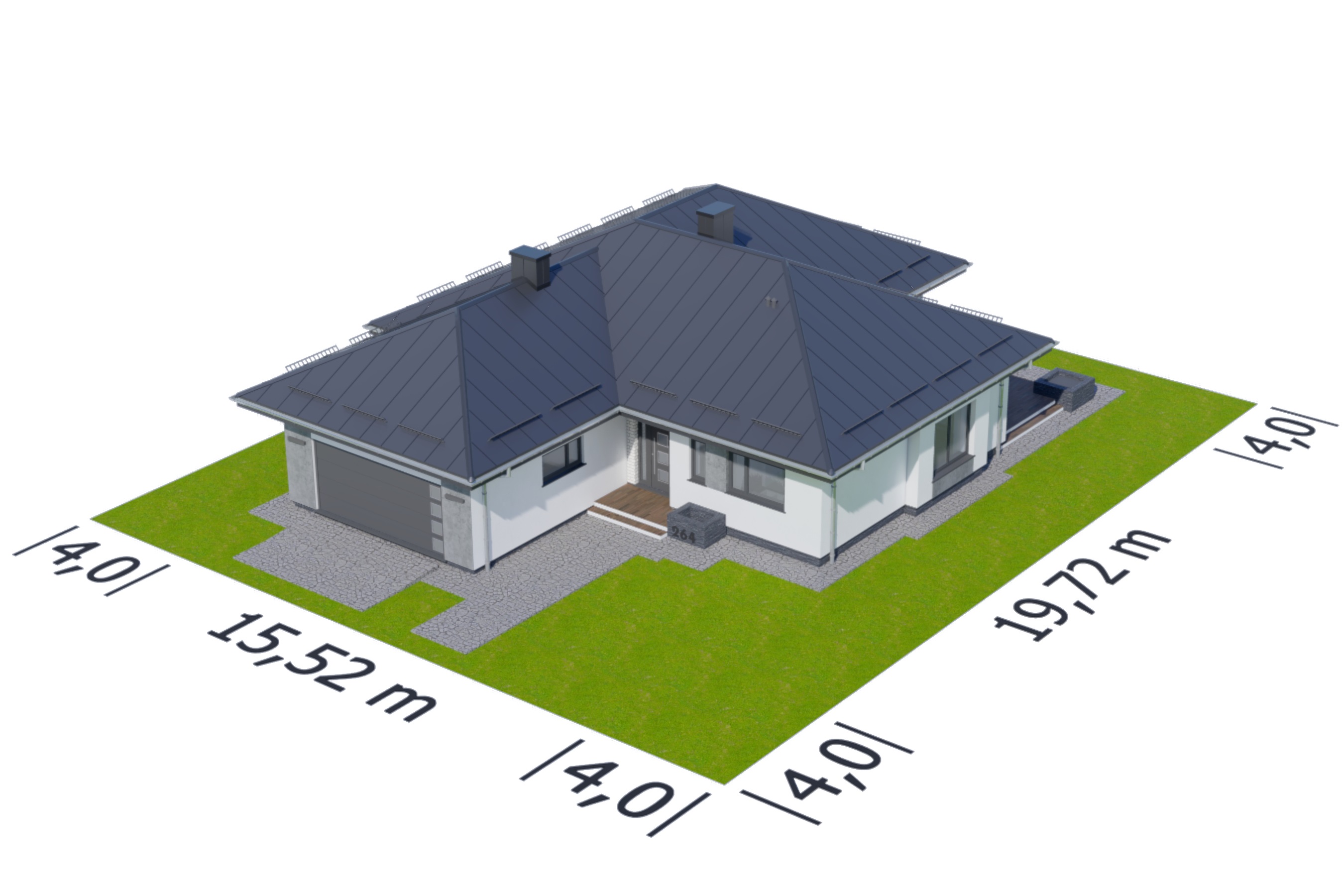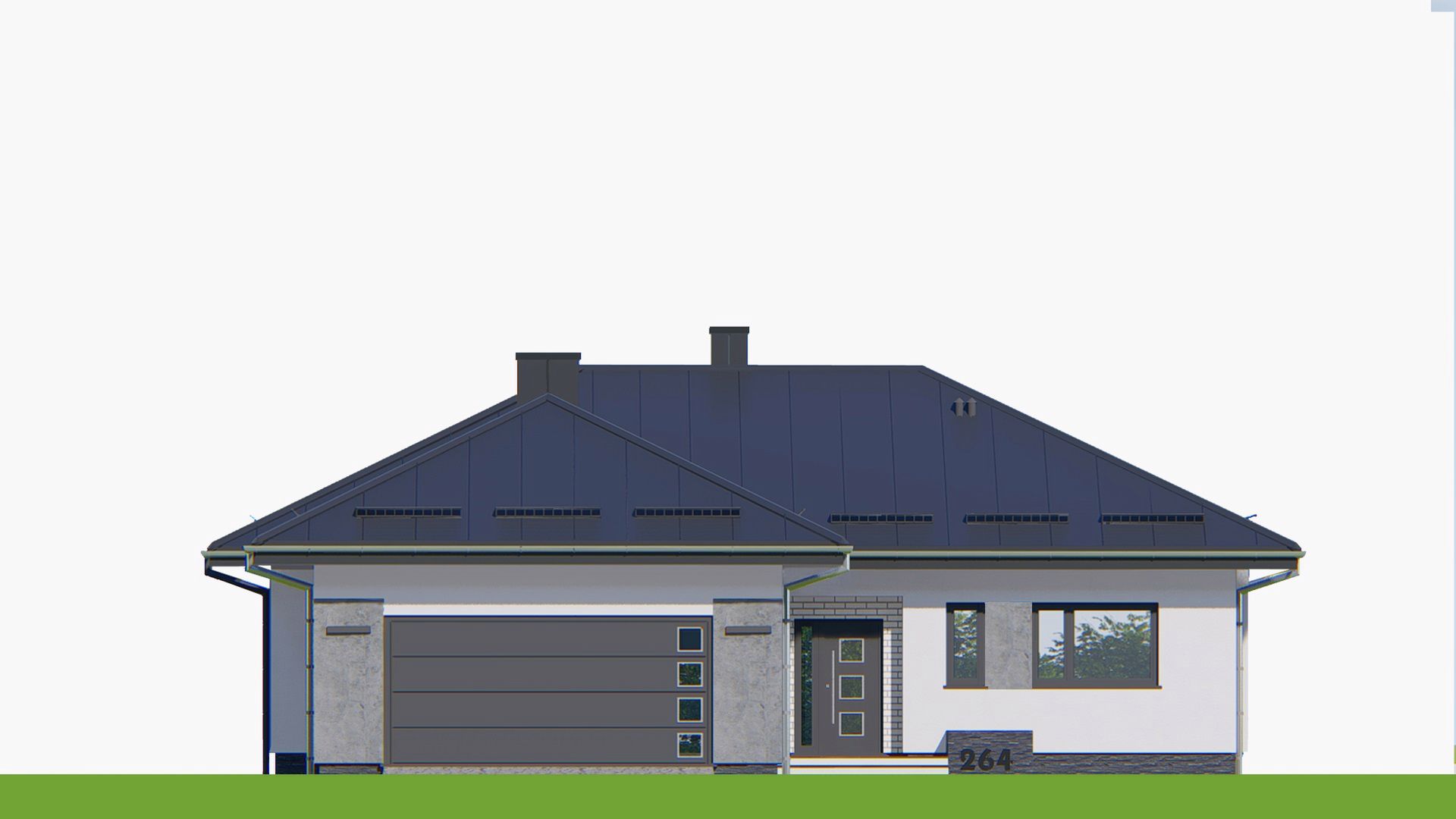 Graficzne opracowanie rzutów poglądowych widocznych na karcie projektu zostało wykonane przez Extradom.pl. Prezentowane przez Extradom.pl wizualizacje wykonane zostały przez autora projektu i należy poczytywać je jedynie za przykład i propozycję wykończenia, wizję architektoniczną autora projektu. Ostateczne wykończenie budynku może nastąpić na wiele sposobów. Szczegółowe rozwiązania zastosowane w oferowanej dokumentacji - w tym również ilość, lokalizacje i wygląd okien, drzwi, kominów - mogą w niewielkim stopniu różnić się od prezentowanej wizualizacji budynku.