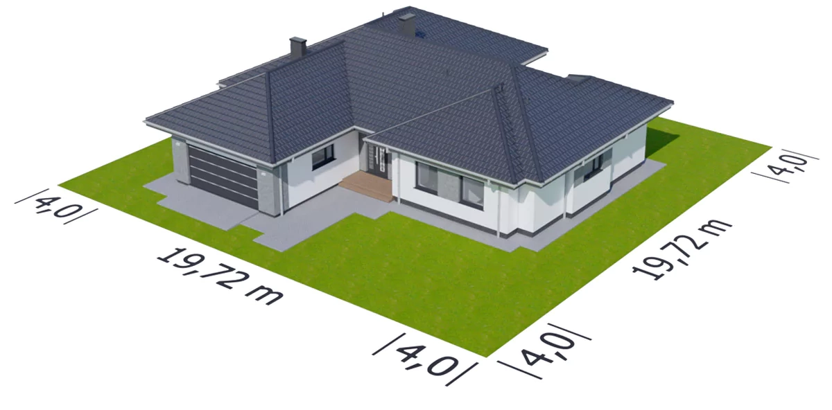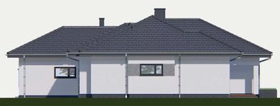 Graficzne opracowanie rzutów poglądowych widocznych na karcie projektu zostało wykonane przez Extradom.pl. Prezentowane przez Extradom.pl wizualizacje wykonane zostały przez autora projektu i należy poczytywać je jedynie za przykład i propozycję wykończenia, wizję architektoniczną autora projektu. Ostateczne wykończenie budynku może nastąpić na wiele sposobów. Szczegółowe rozwiązania zastosowane w oferowanej dokumentacji - w tym również ilość, lokalizacje i wygląd okien, drzwi, kominów - mogą w niewielkim stopniu różnić się od prezentowanej wizualizacji budynku.