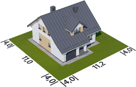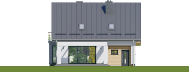 Graficzne opracowanie rzutów poglądowych widocznych na karcie projektu zostało wykonane przez Extradom.pl. Prezentowane przez Extradom.pl wizualizacje wykonane zostały przez autora projektu i należy poczytywać je jedynie za przykład i propozycję wykończenia, wizję architektoniczną autora projektu. Ostateczne wykończenie budynku może nastąpić na wiele sposobów. Szczegółowe rozwiązania zastosowane w oferowanej dokumentacji - w tym również ilość, lokalizacje i wygląd okien, drzwi, kominów - mogą w niewielkim stopniu różnić się od prezentowanej wizualizacji budynku.