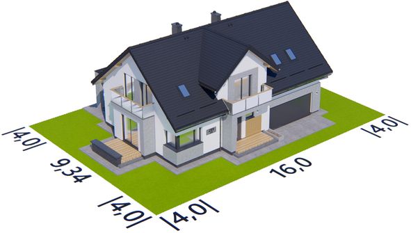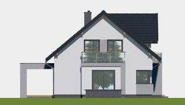Graficzne opracowanie rzutów poglądowych widocznych na karcie projektu zostało wykonane przez Extradom.pl. Prezentowane przez Extradom.pl wizualizacje wykonane zostały przez autora projektu i należy poczytywać je jedynie za przykład i propozycję wykończenia, wizję architektoniczną autora projektu. Ostateczne wykończenie budynku może nastąpić na wiele sposobów. Szczegółowe rozwiązania zastosowane w oferowanej dokumentacji - w tym również ilość, lokalizacje i wygląd okien, drzwi, kominów - mogą w niewielkim stopniu różnić się od prezentowanej wizualizacji budynku.