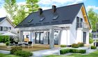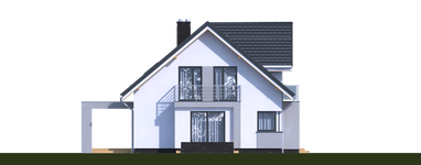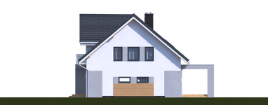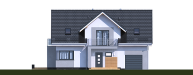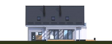 Graficzne opracowanie rzutów poglądowych widocznych na karcie projektu zostało wykonane przez Extradom.pl. Prezentowane przez Extradom.pl wizualizacje wykonane zostały przez autora projektu i należy poczytywać je jedynie za przykład i propozycję wykończenia, wizję architektoniczną autora projektu. Ostateczne wykończenie budynku może nastąpić na wiele sposobów. Szczegółowe rozwiązania zastosowane w oferowanej dokumentacji - w tym również ilość, lokalizacje i wygląd okien, drzwi, kominów - mogą w niewielkim stopniu różnić się od prezentowanej wizualizacji budynku.