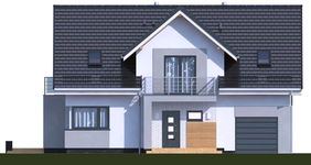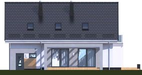 Graficzne opracowanie rzutów poglądowych widocznych na karcie projektu zostało wykonane przez Extradom.pl. Prezentowane przez Extradom.pl wizualizacje wykonane zostały przez autora projektu i należy poczytywać je jedynie za przykład i propozycję wykończenia, wizję architektoniczną autora projektu. Ostateczne wykończenie budynku może nastąpić na wiele sposobów. Szczegółowe rozwiązania zastosowane w oferowanej dokumentacji - w tym również ilość, lokalizacje i wygląd okien, drzwi, kominów - mogą w niewielkim stopniu różnić się od prezentowanej wizualizacji budynku.