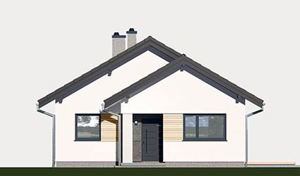 Graficzne opracowanie rzutów poglądowych widocznych na karcie projektu zostało wykonane przez Extradom.pl. Prezentowane przez Extradom.pl wizualizacje wykonane zostały przez autora projektu i należy poczytywać je jedynie za przykład i propozycję wykończenia, wizję architektoniczną autora projektu. Ostateczne wykończenie budynku może nastąpić na wiele sposobów. Szczegółowe rozwiązania zastosowane w oferowanej dokumentacji - w tym również ilość, lokalizacje i wygląd okien, drzwi, kominów - mogą w niewielkim stopniu różnić się od prezentowanej wizualizacji budynku.