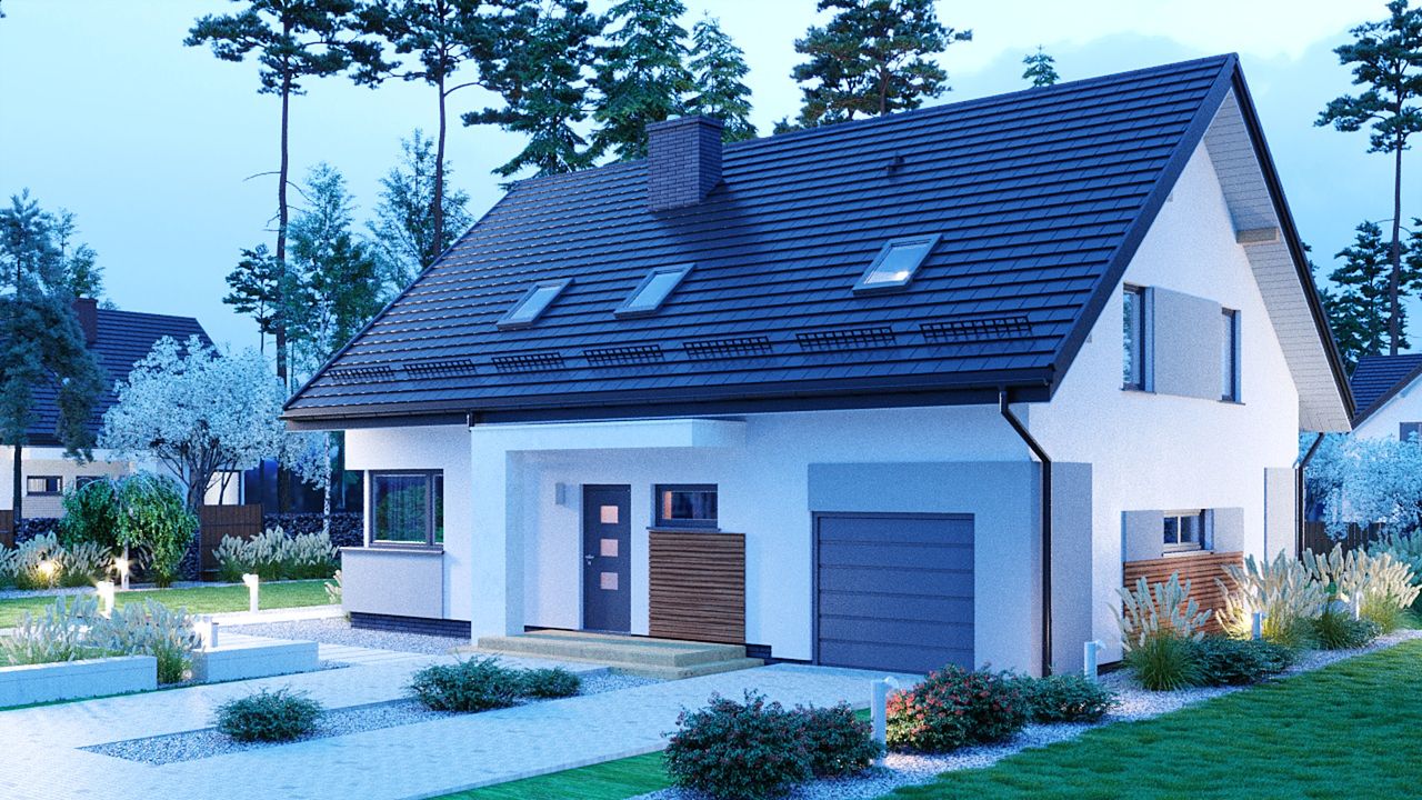 Projekt domu APS 303 to propozycja dla 4-5 osobowej rodziny, która poszukuje domu w tradycyjnym stylu z poddaszem użytkowym. Klasyczna bryła z jednostanowiskowym garażem wkomponowanym w konstrukcję budynku łączy sprawdzoną estetykę z przemyślanym układem funkcjonalnym, oferując 126,3 m² komfortowej powierzchni.