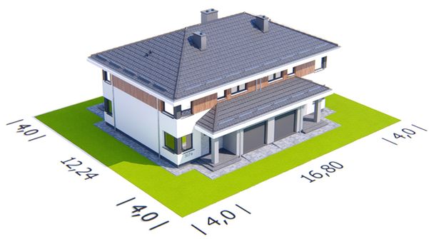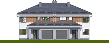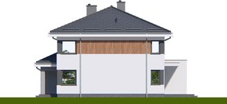Graficzne opracowanie rzutów poglądowych widocznych na karcie projektu zostało wykonane przez Extradom.pl. Prezentowane przez Extradom.pl wizualizacje wykonane zostały przez autora projektu i należy poczytywać je jedynie za przykład i propozycję wykończenia, wizję architektoniczną autora projektu. Ostateczne wykończenie budynku może nastąpić na wiele sposobów. Szczegółowe rozwiązania zastosowane w oferowanej dokumentacji - w tym również ilość, lokalizacje i wygląd okien, drzwi, kominów - mogą w niewielkim stopniu różnić się od prezentowanej wizualizacji budynku.