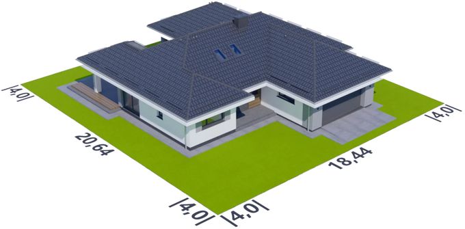 Graficzne opracowanie rzutów poglądowych widocznych na karcie projektu zostało wykonane przez Extradom.pl. Prezentowane przez Extradom.pl wizualizacje wykonane zostały przez autora projektu i należy poczytywać je jedynie za przykład i propozycję wykończenia, wizję architektoniczną autora projektu. Ostateczne wykończenie budynku może nastąpić na wiele sposobów. Szczegółowe rozwiązania zastosowane w oferowanej dokumentacji - w tym również ilość, lokalizacje i wygląd okien, drzwi, kominów - mogą w niewielkim stopniu różnić się od prezentowanej wizualizacji budynku.