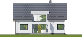 Graficzne opracowanie rzutów poglądowych widocznych na karcie projektu zostało wykonane przez Extradom.pl. Prezentowane przez Extradom.pl wizualizacje wykonane zostały przez autora projektu i należy poczytywać je jedynie za przykład i propozycję wykończenia, wizję architektoniczną autora projektu. Ostateczne wykończenie budynku może nastąpić na wiele sposobów. Szczegółowe rozwiązania zastosowane w oferowanej dokumentacji - w tym również ilość, lokalizacje i wygląd okien, drzwi, kominów - mogą w niewielkim stopniu różnić się od prezentowanej wizualizacji budynku.
