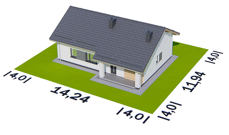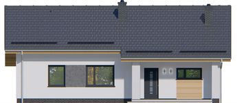 Graficzne opracowanie rzutów poglądowych widocznych na karcie projektu zostało wykonane przez Extradom.pl. Prezentowane przez Extradom.pl wizualizacje wykonane zostały przez autora projektu i należy poczytywać je jedynie za przykład i propozycję wykończenia, wizję architektoniczną autora projektu. Ostateczne wykończenie budynku może nastąpić na wiele sposobów. Szczegółowe rozwiązania zastosowane w oferowanej dokumentacji - w tym również ilość, lokalizacje i wygląd okien, drzwi, kominów - mogą w niewielkim stopniu różnić się od prezentowanej wizualizacji budynku.