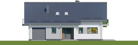 Graficzne opracowanie rzutów poglądowych widocznych na karcie projektu zostało wykonane przez Extradom.pl. Prezentowane przez Extradom.pl wizualizacje wykonane zostały przez autora projektu i należy poczytywać je jedynie za przykład i propozycję wykończenia, wizję architektoniczną autora projektu. Ostateczne wykończenie budynku może nastąpić na wiele sposobów. Szczegółowe rozwiązania zastosowane w oferowanej dokumentacji - w tym również ilość, lokalizacje i wygląd okien, drzwi, kominów - mogą w niewielkim stopniu różnić się od prezentowanej wizualizacji budynku.