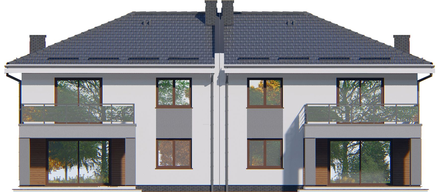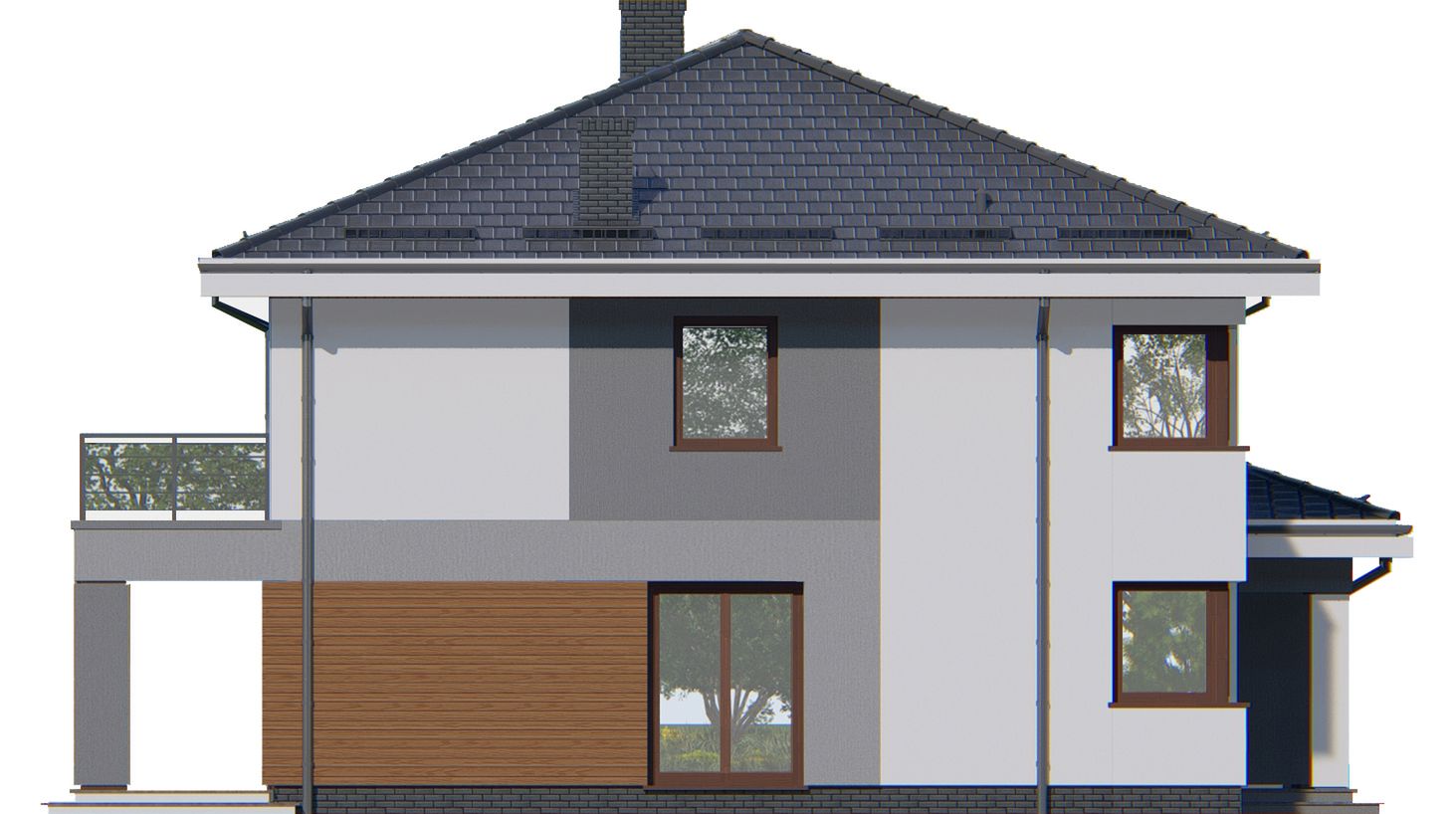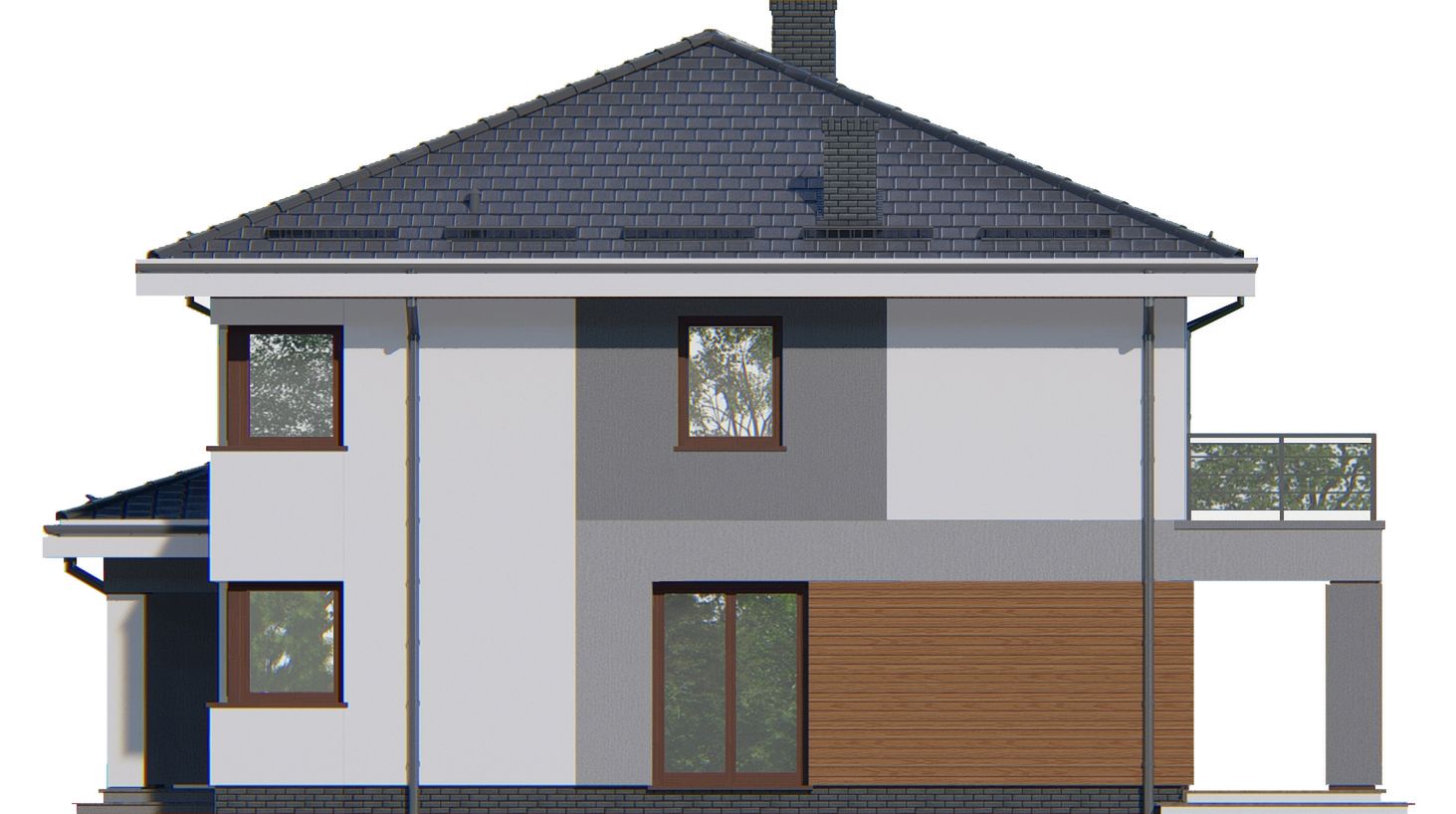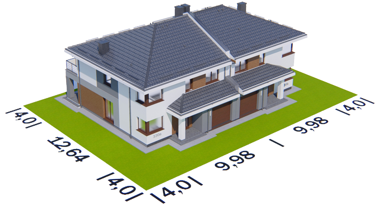 Graficzne opracowanie rzutów poglądowych widocznych na karcie projektu zostało wykonane przez Extradom.pl. Prezentowane przez Extradom.pl wizualizacje wykonane zostały przez autora projektu i należy poczytywać je jedynie za przykład i propozycję wykończenia, wizję architektoniczną autora projektu. Ostateczne wykończenie budynku może nastąpić na wiele sposobów. Szczegółowe rozwiązania zastosowane w oferowanej dokumentacji - w tym również ilość, lokalizacje i wygląd okien, drzwi, kominów - mogą w niewielkim stopniu różnić się od prezentowanej wizualizacji budynku.