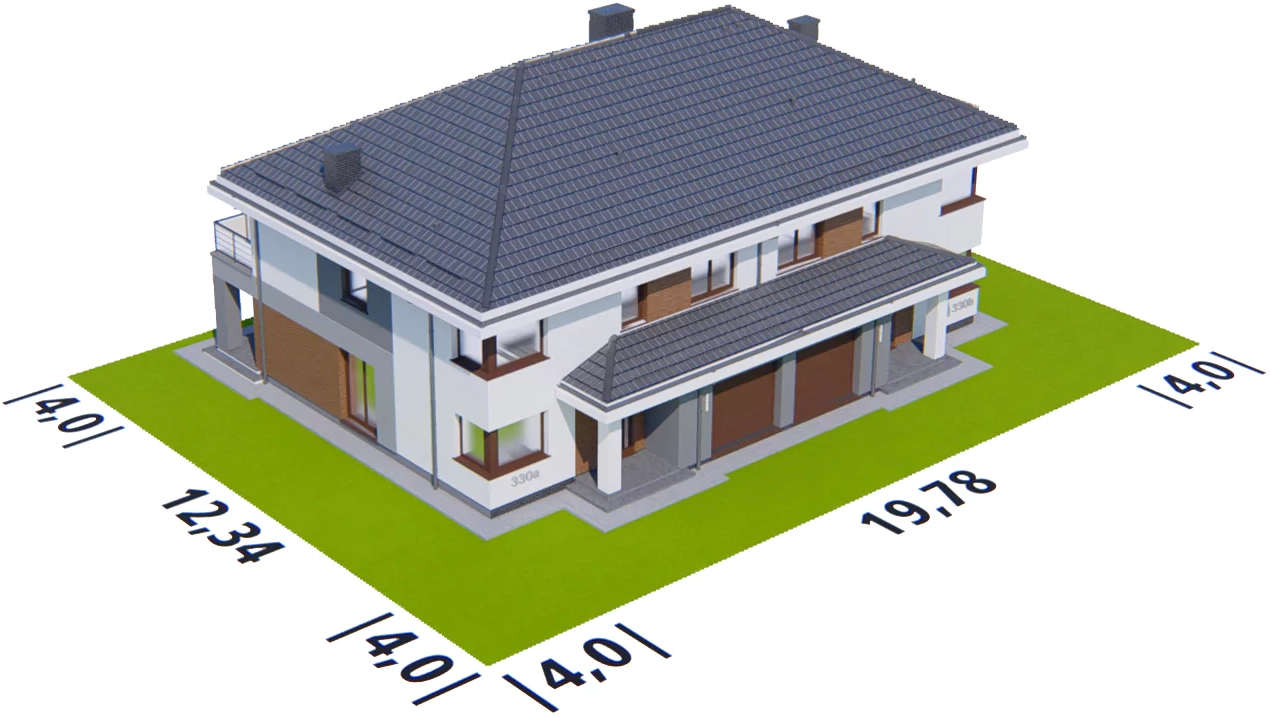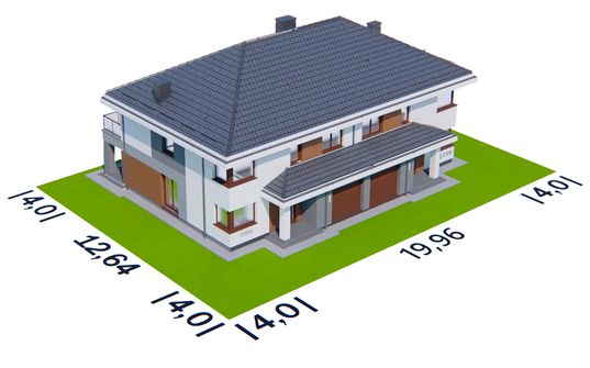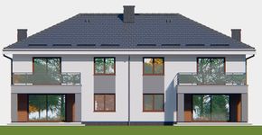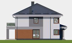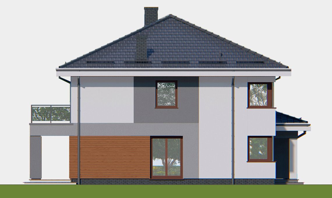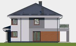 Graficzne opracowanie rzutów poglądowych widocznych na karcie projektu zostało wykonane przez Extradom.pl. Prezentowane przez Extradom.pl wizualizacje wykonane zostały przez autora projektu i należy poczytywać je jedynie za przykład i propozycję wykończenia, wizję architektoniczną autora projektu. Ostateczne wykończenie budynku może nastąpić na wiele sposobów. Szczegółowe rozwiązania zastosowane w oferowanej dokumentacji - w tym również ilość, lokalizacje i wygląd okien, drzwi, kominów - mogą w niewielkim stopniu różnić się od prezentowanej wizualizacji budynku.