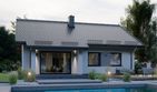Graficzne opracowanie rzutów poglądowych widocznych na karcie projektu zostało wykonane przez Extradom.pl. Prezentowane przez Extradom.pl wizualizacje wykonane zostały przez autora projektu i należy poczytywać je jedynie za przykład i propozycję wykończenia, wizję architektoniczną autora projektu. Ostateczne wykończenie budynku może nastąpić na wiele sposobów. Szczegółowe rozwiązania zastosowane w oferowanej dokumentacji - w tym również ilość, lokalizacje i wygląd okien, drzwi, kominów - mogą w niewielkim stopniu różnić się od prezentowanej wizualizacji budynku.