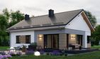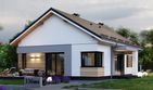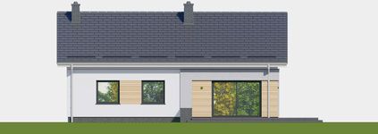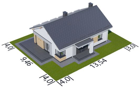 Graficzne opracowanie rzutów poglądowych widocznych na karcie projektu zostało wykonane przez Extradom.pl. Prezentowane przez Extradom.pl wizualizacje wykonane zostały przez autora projektu i należy poczytywać je jedynie za przykład i propozycję wykończenia, wizję architektoniczną autora projektu. Ostateczne wykończenie budynku może nastąpić na wiele sposobów. Szczegółowe rozwiązania zastosowane w oferowanej dokumentacji - w tym również ilość, lokalizacje i wygląd okien, drzwi, kominów - mogą w niewielkim stopniu różnić się od prezentowanej wizualizacji budynku.