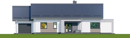 Graficzne opracowanie rzutów poglądowych widocznych na karcie projektu zostało wykonane przez Extradom.pl. Prezentowane przez Extradom.pl wizualizacje wykonane zostały przez autora projektu i należy poczytywać je jedynie za przykład i propozycję wykończenia, wizję architektoniczną autora projektu. Ostateczne wykończenie budynku może nastąpić na wiele sposobów. Szczegółowe rozwiązania zastosowane w oferowanej dokumentacji - w tym również ilość, lokalizacje i wygląd okien, drzwi, kominów - mogą w niewielkim stopniu różnić się od prezentowanej wizualizacji budynku.