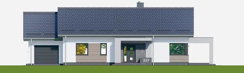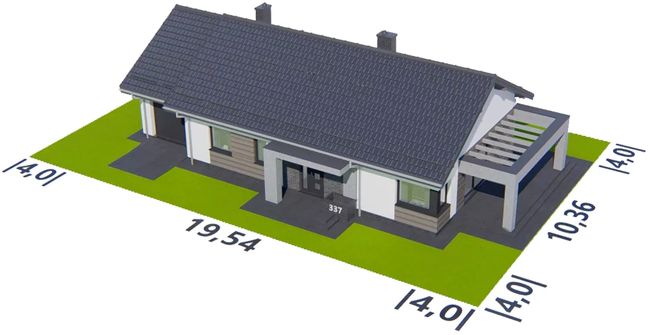 Graficzne opracowanie rzutów poglądowych widocznych na karcie projektu zostało wykonane przez Extradom.pl. Prezentowane przez Extradom.pl wizualizacje wykonane zostały przez autora projektu i należy poczytywać je jedynie za przykład i propozycję wykończenia, wizję architektoniczną autora projektu. Ostateczne wykończenie budynku może nastąpić na wiele sposobów. Szczegółowe rozwiązania zastosowane w oferowanej dokumentacji - w tym również ilość, lokalizacje i wygląd okien, drzwi, kominów - mogą w niewielkim stopniu różnić się od prezentowanej wizualizacji budynku.