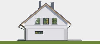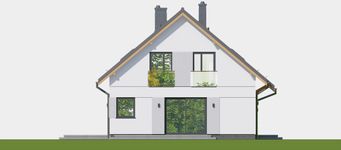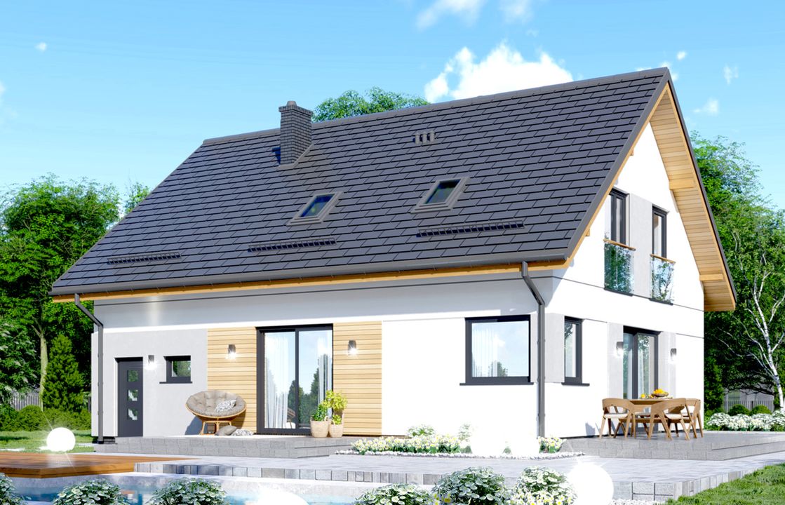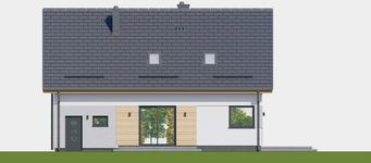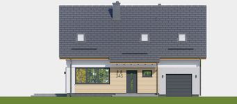 Graficzne opracowanie rzutów poglądowych widocznych na karcie projektu zostało wykonane przez Extradom.pl. Prezentowane przez Extradom.pl wizualizacje wykonane zostały przez autora projektu i należy poczytywać je jedynie za przykład i propozycję wykończenia, wizję architektoniczną autora projektu. Ostateczne wykończenie budynku może nastąpić na wiele sposobów. Szczegółowe rozwiązania zastosowane w oferowanej dokumentacji - w tym również ilość, lokalizacje i wygląd okien, drzwi, kominów - mogą w niewielkim stopniu różnić się od prezentowanej wizualizacji budynku.