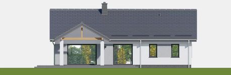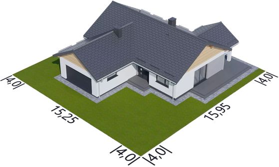 Graficzne opracowanie rzutów poglądowych widocznych na karcie projektu zostało wykonane przez Extradom.pl. Prezentowane przez Extradom.pl wizualizacje wykonane zostały przez autora projektu i należy poczytywać je jedynie za przykład i propozycję wykończenia, wizję architektoniczną autora projektu. Ostateczne wykończenie budynku może nastąpić na wiele sposobów. Szczegółowe rozwiązania zastosowane w oferowanej dokumentacji - w tym również ilość, lokalizacje i wygląd okien, drzwi, kominów - mogą w niewielkim stopniu różnić się od prezentowanej wizualizacji budynku.