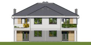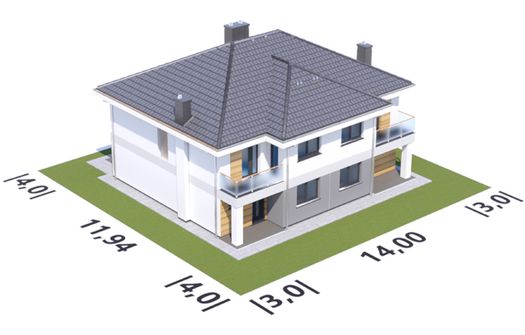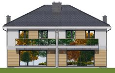 Graficzne opracowanie rzutów poglądowych widocznych na karcie projektu zostało wykonane przez Extradom.pl. Prezentowane przez Extradom.pl wizualizacje wykonane zostały przez autora projektu i należy poczytywać je jedynie za przykład i propozycję wykończenia, wizję architektoniczną autora projektu. Ostateczne wykończenie budynku może nastąpić na wiele sposobów. Szczegółowe rozwiązania zastosowane w oferowanej dokumentacji - w tym również ilość, lokalizacje i wygląd okien, drzwi, kominów - mogą w niewielkim stopniu różnić się od prezentowanej wizualizacji budynku.