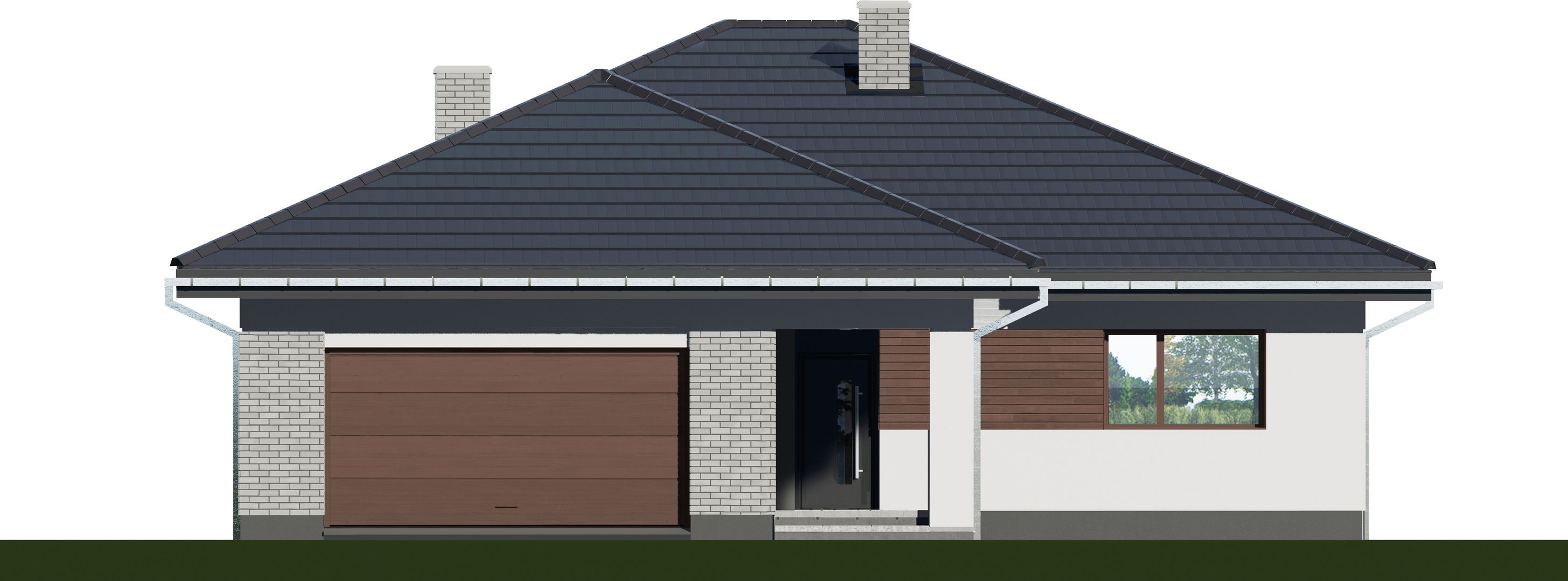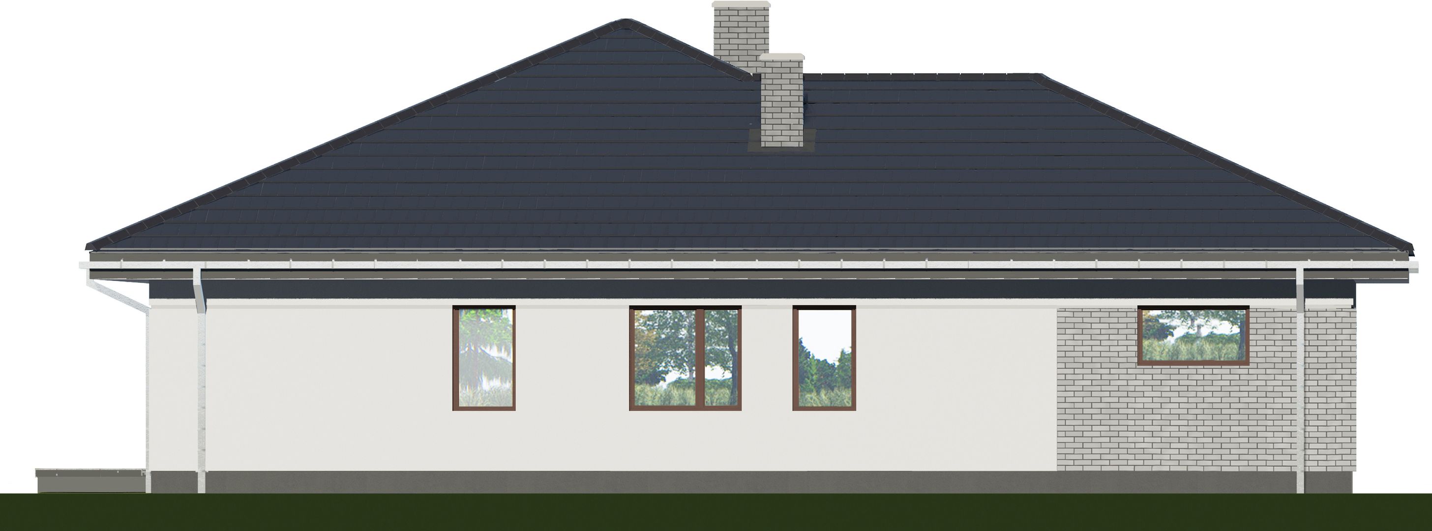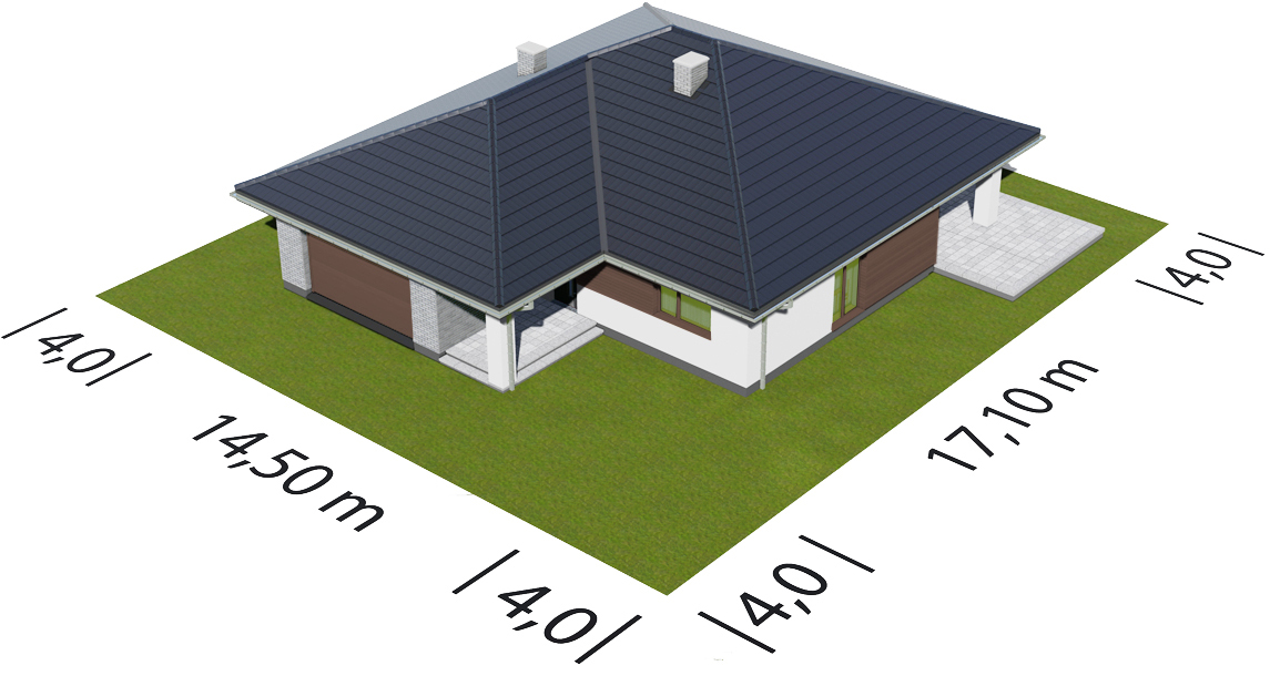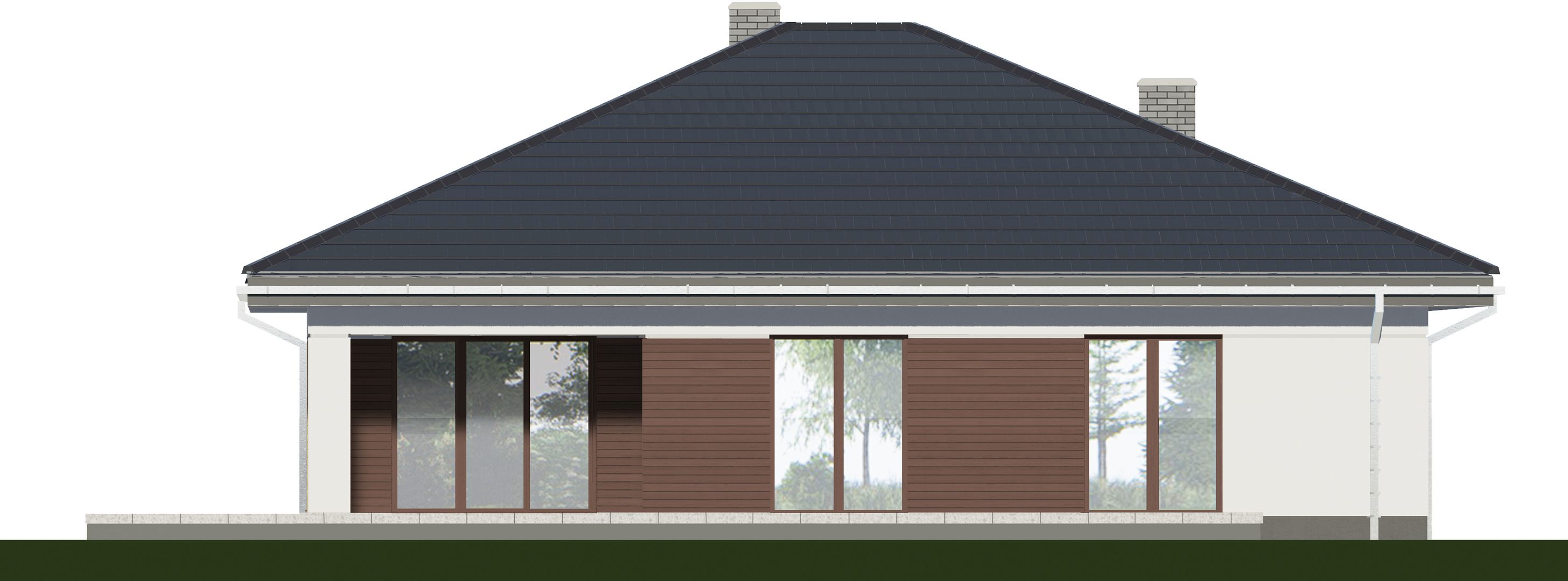 Graficzne opracowanie rzutów poglądowych widocznych na karcie projektu zostało wykonane przez Extradom.pl. Prezentowane przez Extradom.pl wizualizacje wykonane zostały przez autora projektu i należy poczytywać je jedynie za przykład i propozycję wykończenia, wizję architektoniczną autora projektu. Ostateczne wykończenie budynku może nastąpić na wiele sposobów. Szczegółowe rozwiązania zastosowane w oferowanej dokumentacji - w tym również ilość, lokalizacje i wygląd okien, drzwi, kominów - mogą w niewielkim stopniu różnić się od prezentowanej wizualizacji budynku.