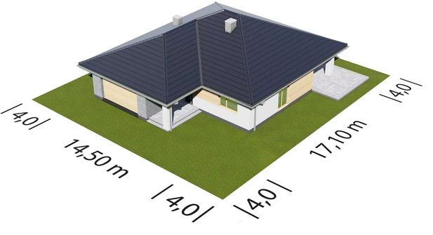 Graficzne opracowanie rzutów poglądowych widocznych na karcie projektu zostało wykonane przez Extradom.pl. Prezentowane przez Extradom.pl wizualizacje wykonane zostały przez autora projektu i należy poczytywać je jedynie za przykład i propozycję wykończenia, wizję architektoniczną autora projektu. Ostateczne wykończenie budynku może nastąpić na wiele sposobów. Szczegółowe rozwiązania zastosowane w oferowanej dokumentacji - w tym również ilość, lokalizacje i wygląd okien, drzwi, kominów - mogą w niewielkim stopniu różnić się od prezentowanej wizualizacji budynku.