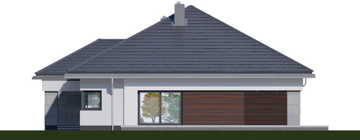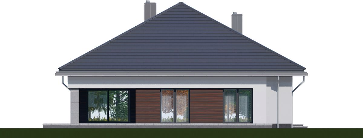 Graficzne opracowanie rzutów poglądowych widocznych na karcie projektu zostało wykonane przez Extradom.pl. Prezentowane przez Extradom.pl wizualizacje wykonane zostały przez autora projektu i należy poczytywać je jedynie za przykład i propozycję wykończenia, wizję architektoniczną autora projektu. Ostateczne wykończenie budynku może nastąpić na wiele sposobów. Szczegółowe rozwiązania zastosowane w oferowanej dokumentacji - w tym również ilość, lokalizacje i wygląd okien, drzwi, kominów - mogą w niewielkim stopniu różnić się od prezentowanej wizualizacji budynku.