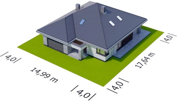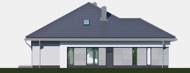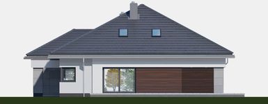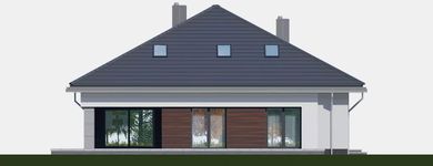 Graficzne opracowanie rzutów poglądowych widocznych na karcie projektu zostało wykonane przez Extradom.pl. Prezentowane przez Extradom.pl wizualizacje wykonane zostały przez autora projektu i należy poczytywać je jedynie za przykład i propozycję wykończenia, wizję architektoniczną autora projektu. Ostateczne wykończenie budynku może nastąpić na wiele sposobów. Szczegółowe rozwiązania zastosowane w oferowanej dokumentacji - w tym również ilość, lokalizacje i wygląd okien, drzwi, kominów - mogą w niewielkim stopniu różnić się od prezentowanej wizualizacji budynku.