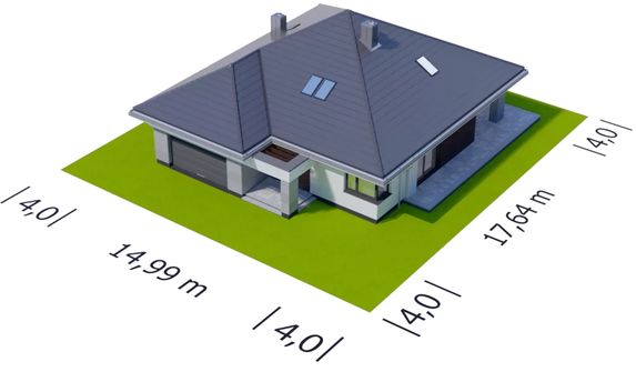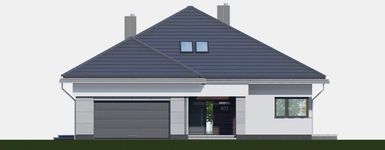 Graficzne opracowanie rzutów poglądowych widocznych na karcie projektu zostało wykonane przez Extradom.pl. Prezentowane przez Extradom.pl wizualizacje wykonane zostały przez autora projektu i należy poczytywać je jedynie za przykład i propozycję wykończenia, wizję architektoniczną autora projektu. Ostateczne wykończenie budynku może nastąpić na wiele sposobów. Szczegółowe rozwiązania zastosowane w oferowanej dokumentacji - w tym również ilość, lokalizacje i wygląd okien, drzwi, kominów - mogą w niewielkim stopniu różnić się od prezentowanej wizualizacji budynku.