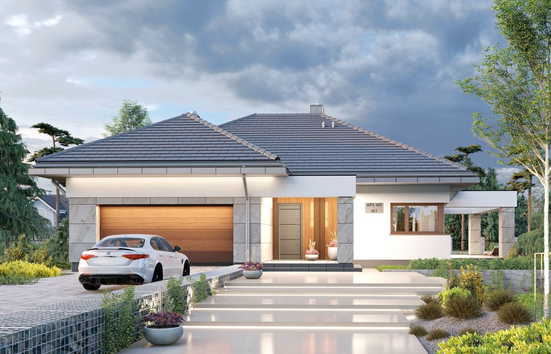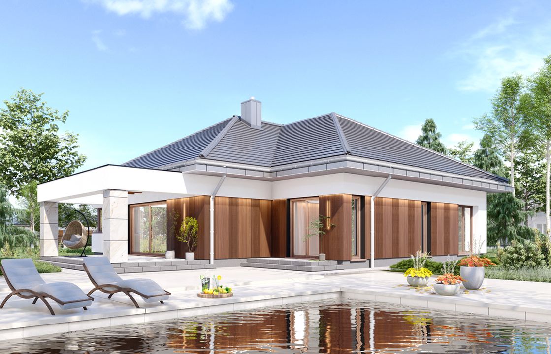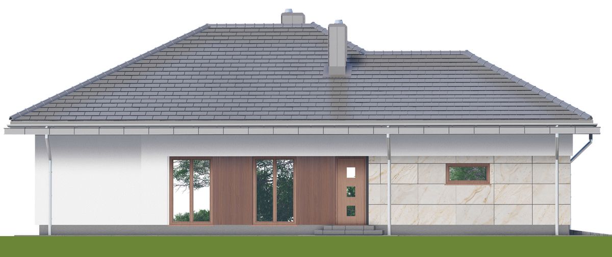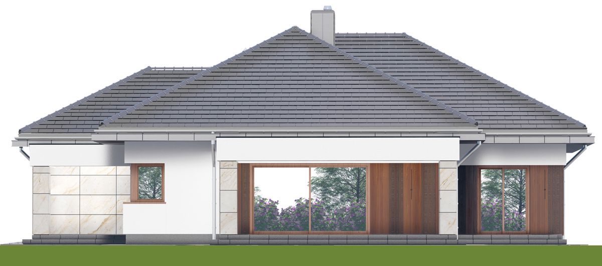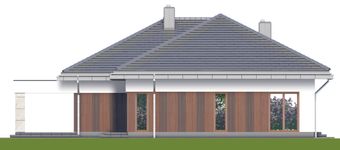 Graficzne opracowanie rzutów poglądowych widocznych na karcie projektu zostało wykonane przez Extradom.pl. Prezentowane przez Extradom.pl wizualizacje wykonane zostały przez autora projektu i należy poczytywać je jedynie za przykład i propozycję wykończenia, wizję architektoniczną autora projektu. Ostateczne wykończenie budynku może nastąpić na wiele sposobów. Szczegółowe rozwiązania zastosowane w oferowanej dokumentacji - w tym również ilość, lokalizacje i wygląd okien, drzwi, kominów - mogą w niewielkim stopniu różnić się od prezentowanej wizualizacji budynku.