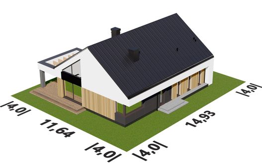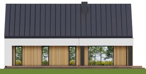 Graficzne opracowanie rzutów poglądowych widocznych na karcie projektu zostało wykonane przez Extradom.pl. Prezentowane przez Extradom.pl wizualizacje wykonane zostały przez autora projektu i należy poczytywać je jedynie za przykład i propozycję wykończenia, wizję architektoniczną autora projektu. Ostateczne wykończenie budynku może nastąpić na wiele sposobów. Szczegółowe rozwiązania zastosowane w oferowanej dokumentacji - w tym również ilość, lokalizacje i wygląd okien, drzwi, kominów - mogą w niewielkim stopniu różnić się od prezentowanej wizualizacji budynku.