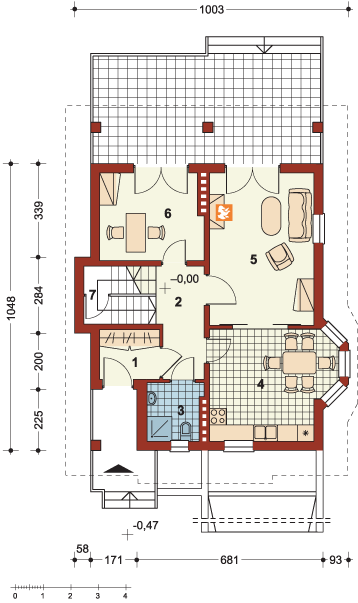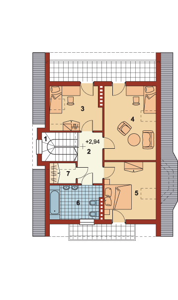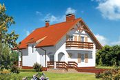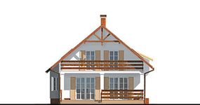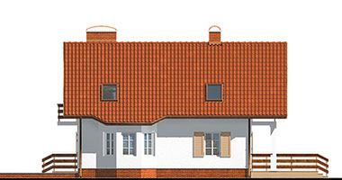 Graficzne opracowanie rzutów poglądowych widocznych na karcie projektu zostało wykonane przez Extradom.pl. Prezentowane przez Extradom.pl wizualizacje wykonane zostały przez autora projektu i należy poczytywać je jedynie za przykład i propozycję wykończenia, wizję architektoniczną autora projektu. Ostateczne wykończenie budynku może nastąpić na wiele sposobów. Szczegółowe rozwiązania zastosowane w oferowanej dokumentacji - w tym również ilość, lokalizacje i wygląd okien, drzwi, kominów - mogą w niewielkim stopniu różnić się od prezentowanej wizualizacji budynku.