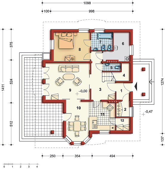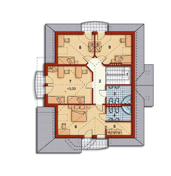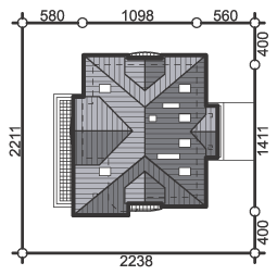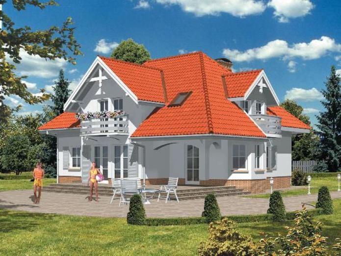 Graficzne opracowanie rzutów poglądowych widocznych na karcie projektu zostało wykonane przez Extradom.pl. Prezentowane przez Extradom.pl wizualizacje wykonane zostały przez autora projektu i należy poczytywać je jedynie za przykład i propozycję wykończenia, wizję architektoniczną autora projektu. Ostateczne wykończenie budynku może nastąpić na wiele sposobów. Szczegółowe rozwiązania zastosowane w oferowanej dokumentacji - w tym również ilość, lokalizacje i wygląd okien, drzwi, kominów - mogą w niewielkim stopniu różnić się od prezentowanej wizualizacji budynku.