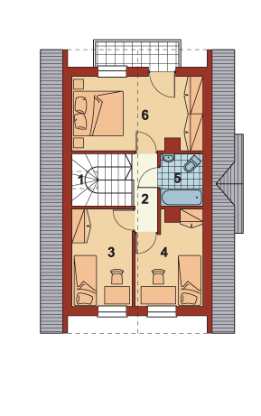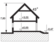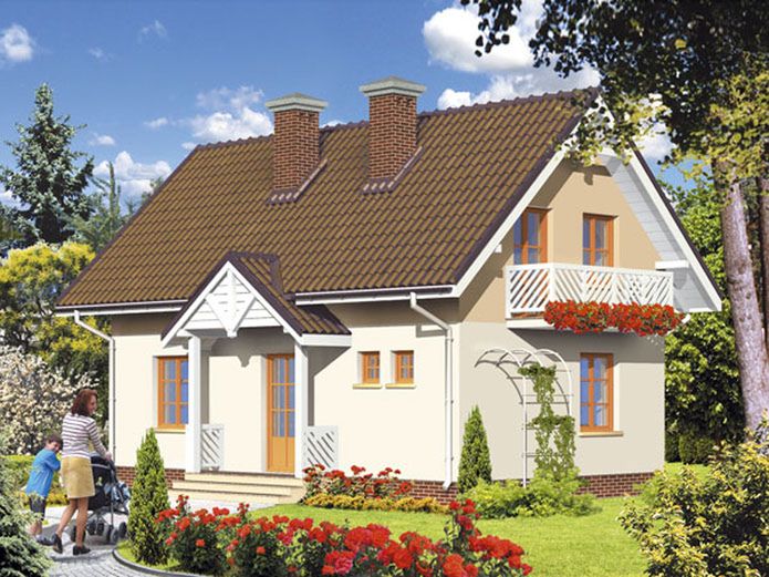 Graficzne opracowanie rzutów poglądowych widocznych na karcie projektu zostało wykonane przez Extradom.pl. Prezentowane przez Extradom.pl wizualizacje wykonane zostały przez autora projektu i należy poczytywać je jedynie za przykład i propozycję wykończenia, wizję architektoniczną autora projektu. Ostateczne wykończenie budynku może nastąpić na wiele sposobów. Szczegółowe rozwiązania zastosowane w oferowanej dokumentacji - w tym również ilość, lokalizacje i wygląd okien, drzwi, kominów - mogą w niewielkim stopniu różnić się od prezentowanej wizualizacji budynku.