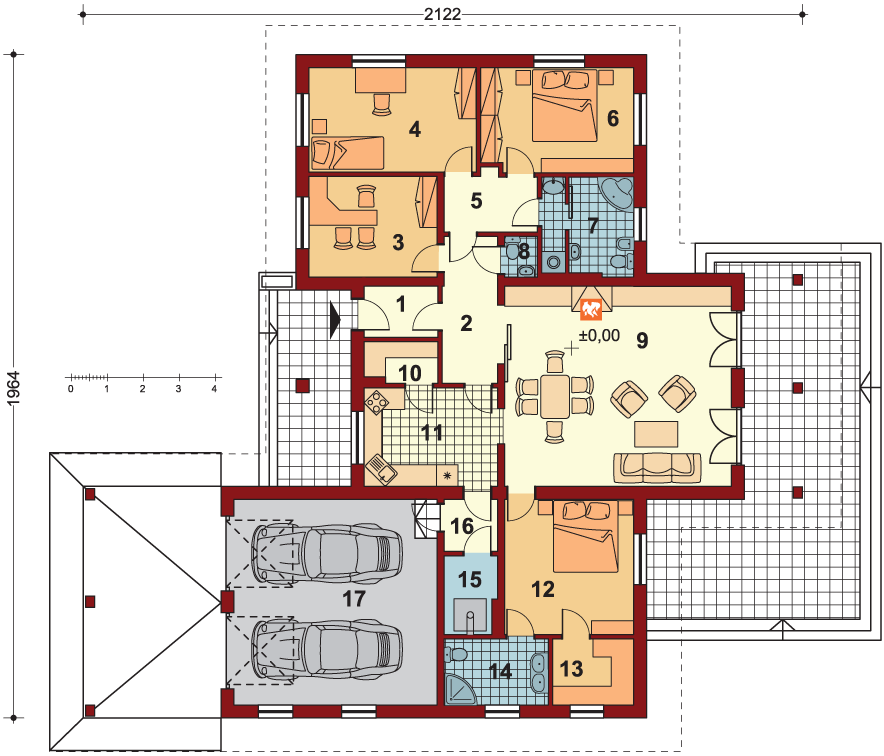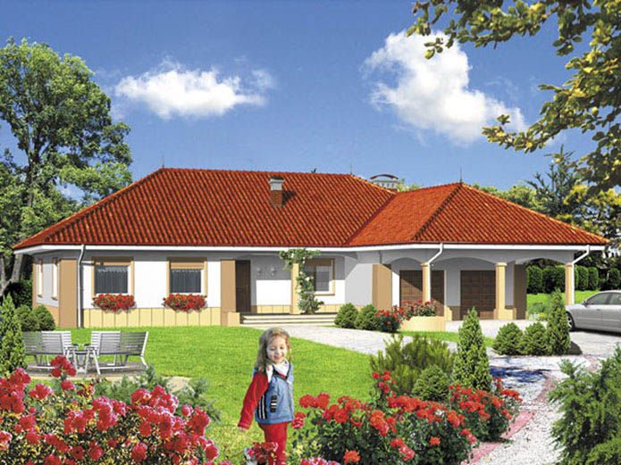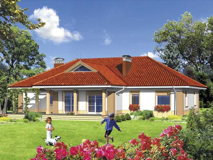 Graficzne opracowanie rzutów poglądowych widocznych na karcie projektu zostało wykonane przez Extradom.pl. Prezentowane przez Extradom.pl wizualizacje wykonane zostały przez autora projektu i należy poczytywać je jedynie za przykład i propozycję wykończenia, wizję architektoniczną autora projektu. Ostateczne wykończenie budynku może nastąpić na wiele sposobów. Szczegółowe rozwiązania zastosowane w oferowanej dokumentacji - w tym również ilość, lokalizacje i wygląd okien, drzwi, kominów - mogą w niewielkim stopniu różnić się od prezentowanej wizualizacji budynku.