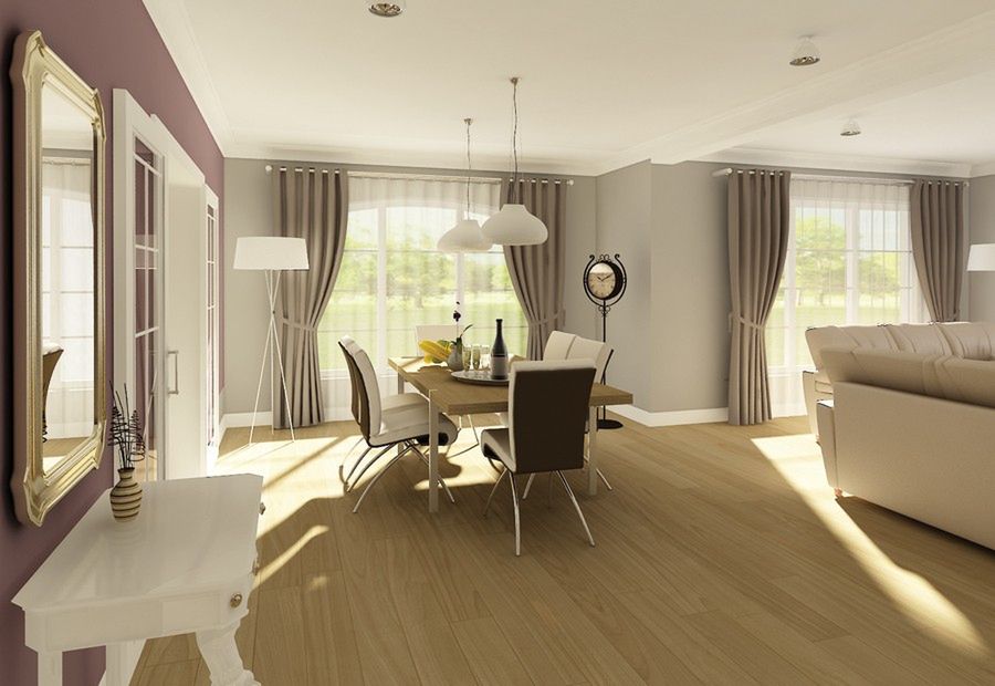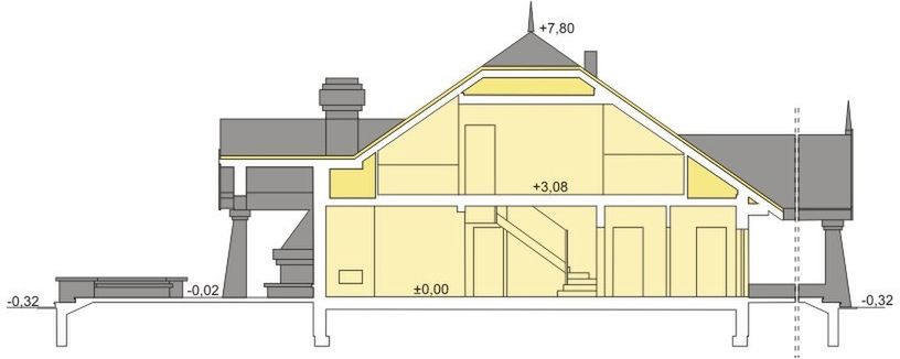 Graficzne opracowanie rzutów poglądowych widocznych na karcie projektu zostało wykonane przez Extradom.pl. Prezentowane przez Extradom.pl wizualizacje wykonane zostały przez autora projektu i należy poczytywać je jedynie za przykład i propozycję wykończenia, wizję architektoniczną autora projektu. Ostateczne wykończenie budynku może nastąpić na wiele sposobów. Szczegółowe rozwiązania zastosowane w oferowanej dokumentacji - w tym również ilość, lokalizacje i wygląd okien, drzwi, kominów - mogą w niewielkim stopniu różnić się od prezentowanej wizualizacji budynku.