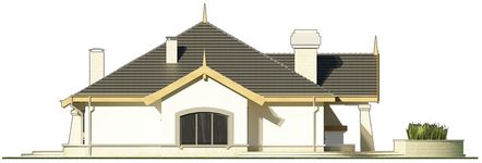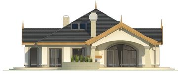 Graficzne opracowanie rzutów poglądowych widocznych na karcie projektu zostało wykonane przez Extradom.pl. Prezentowane przez Extradom.pl wizualizacje wykonane zostały przez autora projektu i należy poczytywać je jedynie za przykład i propozycję wykończenia, wizję architektoniczną autora projektu. Ostateczne wykończenie budynku może nastąpić na wiele sposobów. Szczegółowe rozwiązania zastosowane w oferowanej dokumentacji - w tym również ilość, lokalizacje i wygląd okien, drzwi, kominów - mogą w niewielkim stopniu różnić się od prezentowanej wizualizacji budynku.