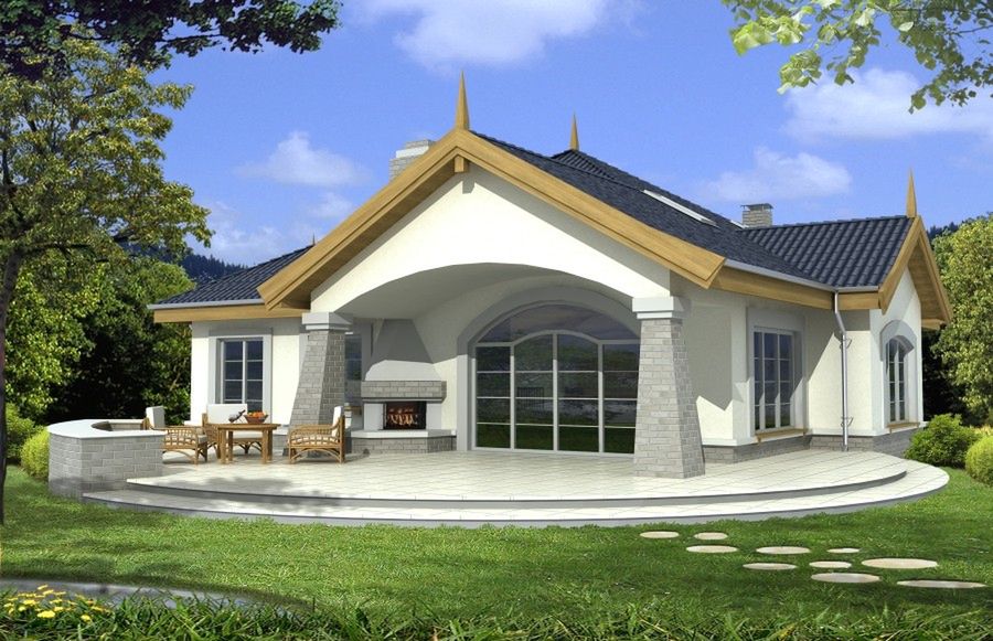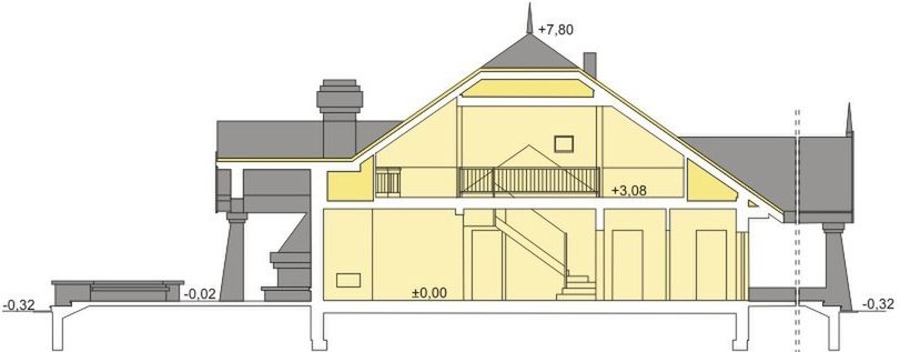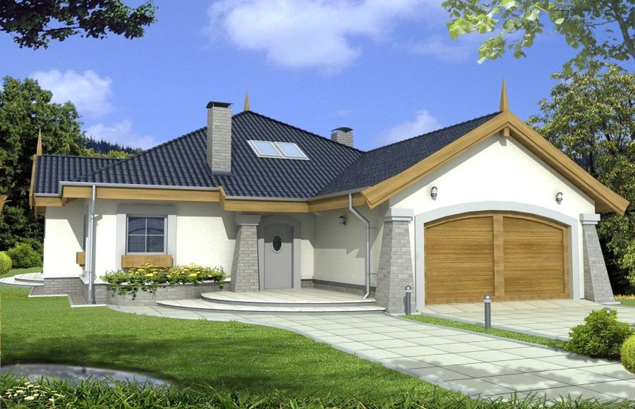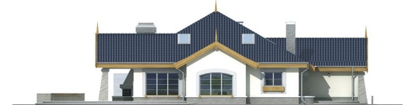 Graficzne opracowanie rzutów poglądowych widocznych na karcie projektu zostało wykonane przez Extradom.pl. Prezentowane przez Extradom.pl wizualizacje wykonane zostały przez autora projektu i należy poczytywać je jedynie za przykład i propozycję wykończenia, wizję architektoniczną autora projektu. Ostateczne wykończenie budynku może nastąpić na wiele sposobów. Szczegółowe rozwiązania zastosowane w oferowanej dokumentacji - w tym również ilość, lokalizacje i wygląd okien, drzwi, kominów - mogą w niewielkim stopniu różnić się od prezentowanej wizualizacji budynku.