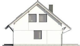 W domu zaproponowaliśmy murowane z gazobetonu ściany z elewacjami obłożonymi od zewnątrz płytami ze styropianu i pokrytymi tynkiem strukturalnym na siatce. Strop nad parterem to gęstożebrowa Teriva. Więźba jest w całości drewniana, a na jej pokrycie można zastosować dowolną dachówkę zakładkową, lub inny materiał odpowiadający preferencjom inwestora. Projekt można zakupić w wersji standard i lustro.