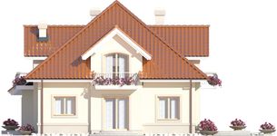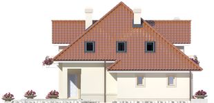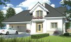 Graficzne opracowanie rzutów poglądowych widocznych na karcie projektu zostało wykonane przez Extradom.pl. Prezentowane przez Extradom.pl wizualizacje wykonane zostały przez autora projektu i należy poczytywać je jedynie za przykład i propozycję wykończenia, wizję architektoniczną autora projektu. Ostateczne wykończenie budynku może nastąpić na wiele sposobów. Szczegółowe rozwiązania zastosowane w oferowanej dokumentacji - w tym również ilość, lokalizacje i wygląd okien, drzwi, kominów - mogą w niewielkim stopniu różnić się od prezentowanej wizualizacji budynku.