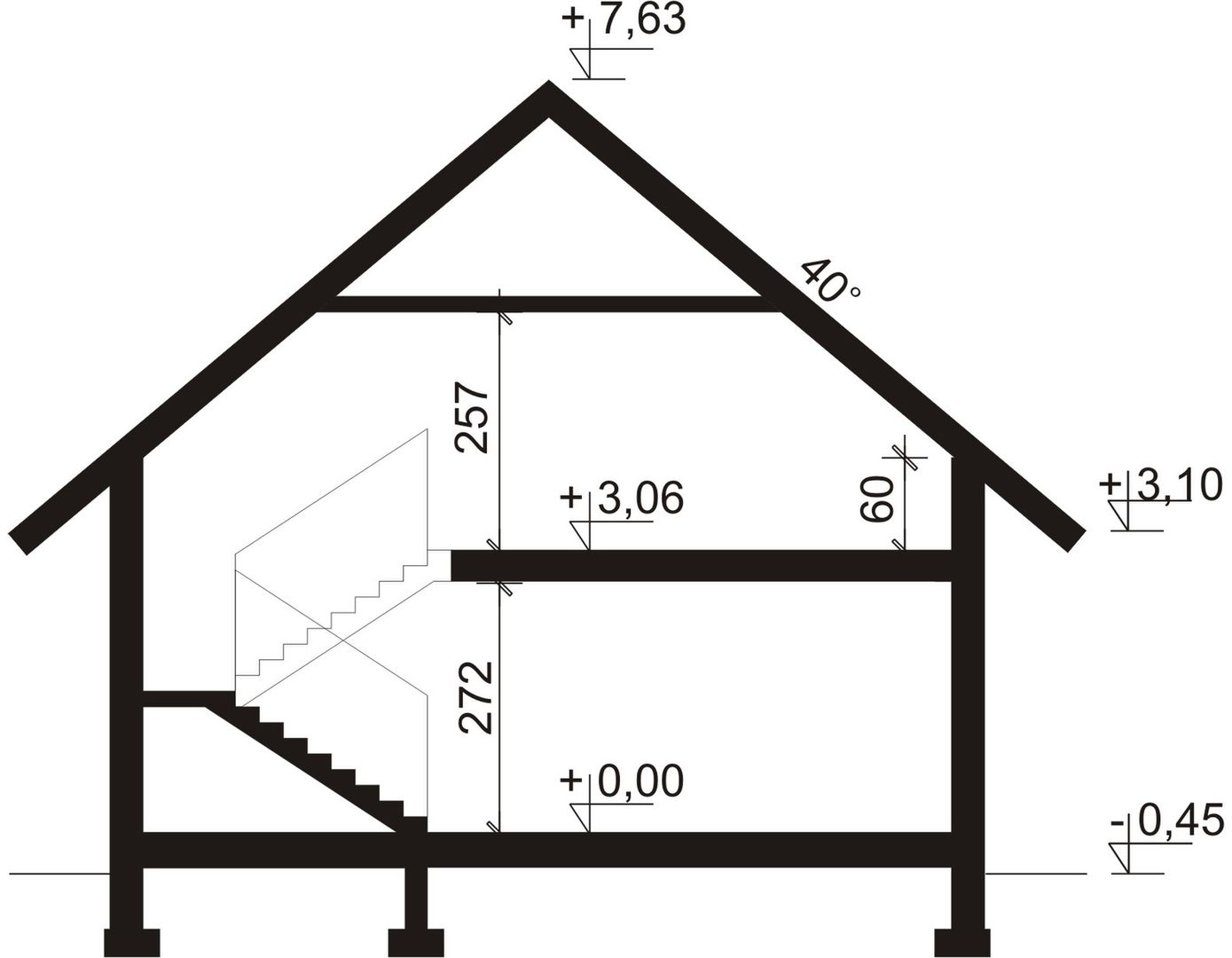 Fundamenty: bezpośrednie, na ławach i stopach fundamentowych. Ściany zewnętrzne: bloczki z bet. komórkowego (odm. 600) - 24 cm + styropian TERMO ORGANIKA typ Fasada 16 cm. Ściany wewnętrzne: bloczki z bet. komórkowego (odm. 600) - 24 cm (działowe - 12 cm) + działowe z płyty G-K na ruszcie (poddasze). Strop: gęstożebrowy Teriva I oraz żelbetowy monolityczny gr. 14 i 24 cm.. Elewacje: tynk - System Platinum firmy TERMO ORGANIKA, deska elewacyjna, płytki klinkierowe. Pokrycie dachu: dachówka cementowa. Konstrukcja dachu: drewniana o układzie konstrukcyjnym mieszanym. Schody wewnętrzne: drewniane wg indywidualnego projektu. Ogrzewanie: kocioł gazowy kondensacyjny.